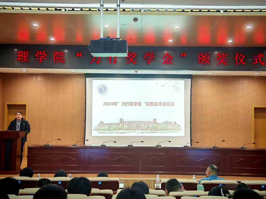 孔亮首先介绍了2023-2024学年“力行奖学金”设置及评选情况。他表示,“力行奖学金”的设立初衷,是纪念和传承孙可明教授大力发展工程力学专业的遗愿,更是为表彰工程力学专业学习成绩优异的学生,夯实专业学风,提升学生学习主动性和积极性。希望同学们能够肩负责任,成为学院发展的动力点,汇成工程力学学科不竭发展的射线。