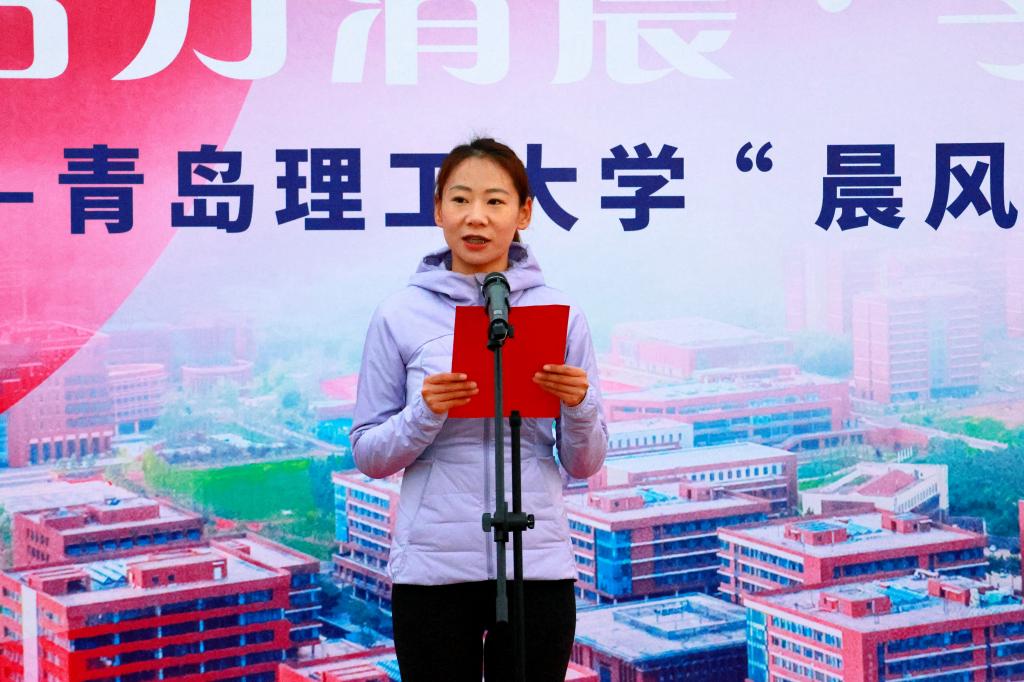 清晨6时30分,启动仪式在庄严的升旗仪式中拉开序幕。伴随着雄壮的国歌声,五星红旗冉冉升起,全体师生肃立注目,表达对祖国的无限热爱和崇高敬意。校男子排球队成员、环境与市政工程学院博士研究生樊星,体育教学部教师成向荣分别作为学生代表和教师代表发言。樊星分享了本、硕、博阶段在本校的就读经历,介绍了体育运动给他带来的积极影响,希望学弟学妹们不断增强体质,锤炼意志,实现身心与学业的全面成长。成向荣表示,强健的体魄是高效学习的基石,良好的体育习惯能够培养坚韧不拔的意志力和积极向上的生活态度,号召大家加入“晨风行动”。全校师生备受鼓舞,积极参与的热情瞬间被点燃。
