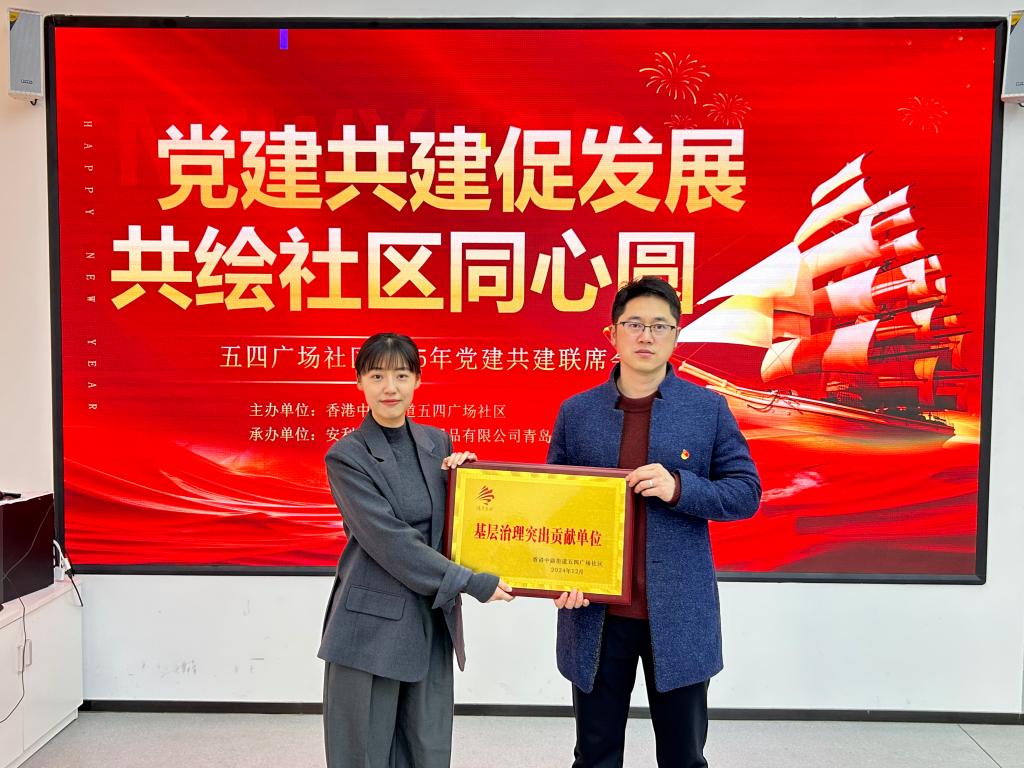 3月23日,理学院收到青岛市香港中路街道五四广场社区颁发的“基层治理突出贡献单位”荣誉牌。这一荣誉不仅是对校、社过去一年来合作工作的高度认可,更是对学院师生社区服务精神的有力肯定。