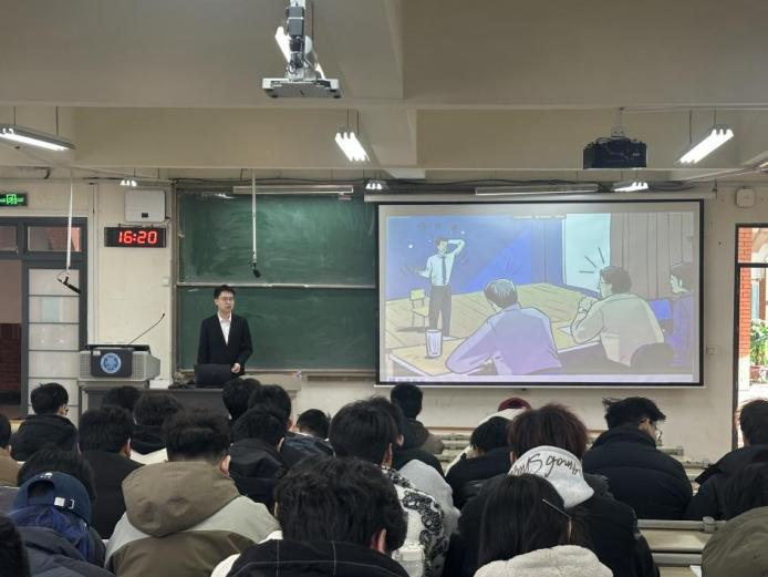 中建科工有限公司人力资源经理曹志鹏,以一名往届毕业学长的身份重返母校课堂,为同学们带来了一场干货满满的职场进阶课。他结合自身丰富的职场经验和人力资源管理经验,讲解了求职面试中的沟通技巧、肢体语言、常见问题等关键环节。土木2210班姬忠政说:“学长拆解的‘无领导讨论加分话术’和‘压力面试破局法’让我对投递简历、步入职场有了底气。”