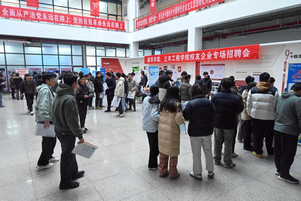 本次校友企业专场招聘会以“春华共筑”为主题,邀请了中建八局一公司、中铁建工、烟台建设集团等近20家校友企业前来参会,现场招聘会共吸引400名毕业生前来投递,据统计,50余名学生与企业达成初步就业意向。招聘会后,学院举办校友企业座谈会,学院党委副书记、副院长王鹏飞向校友企业介绍了学院发展动态和2025届各专业的毕业生的基本情况,将据此交流会研讨内容改进教学方法,优化改革方向。