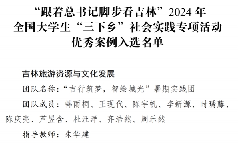 建筑与城乡规划学院学生社会实践团队入选“跟着总书记脚步看吉林”2024年全国大学生“三下乡”实践专项活动优秀案例