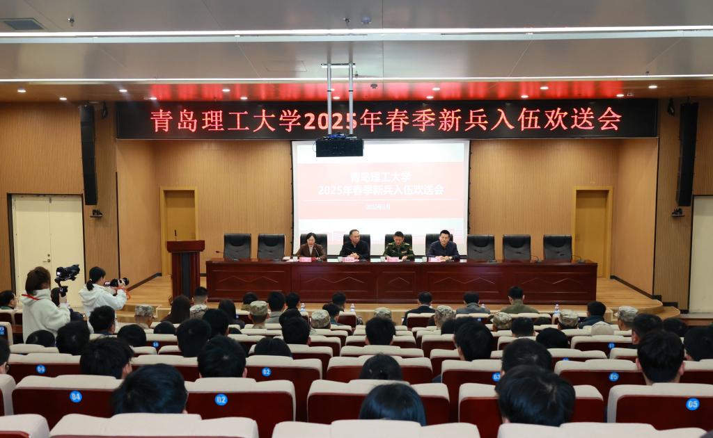 3月13日下午,学校2025年春季新兵入伍欢送会在黄岛校区图书馆报告厅举行。青岛市市北区委常委、区人民武装部部长陈兵,校党委常委、副校长郭建锋,学生工作处(武装部)、团委负责同志,相关学院党委副书记、辅导员代表、2025年春季入伍新兵以及各班学生代表和家长代表参加欢送会。会议由学生工作处(武装部)处长(部长)高洁主持。