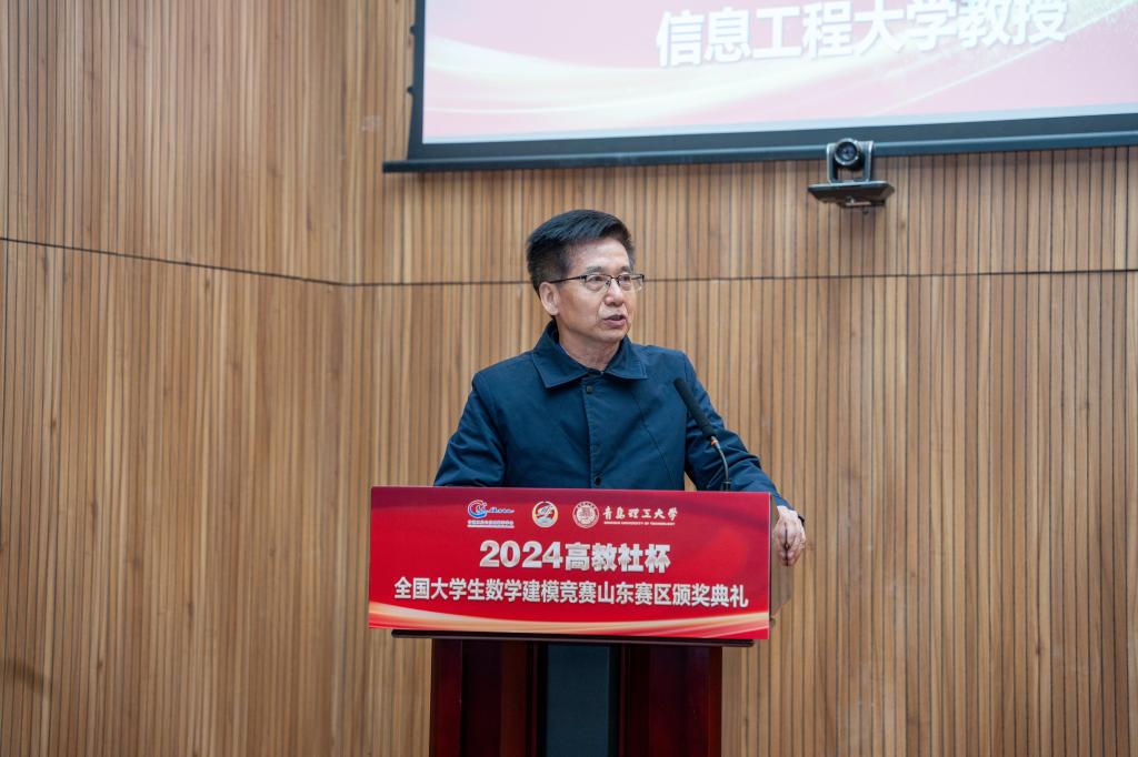 曾宪文在致辞中对全国组委会和专家组对山东赛区的支持表示感谢,对所有获奖高校及指导教师、获奖团队表示祝贺,希望各高校依托学科竞赛,认真抓好贯彻落实,深化人才培养模式改革,一要将竞赛与人才培养深度融合,强化数学思维;二要将竞赛与生产实际充分契合,提高建模能力;三要将竞赛与人工智能紧密结合,拓展学习空间。以此次会议为契机,加强交流、互相学习、共同提高,积极探索教育教学新方法、新模式,以学科竞赛为突破口,为国家培养更多拔尖创新人才和关键领域急需高层次人才。